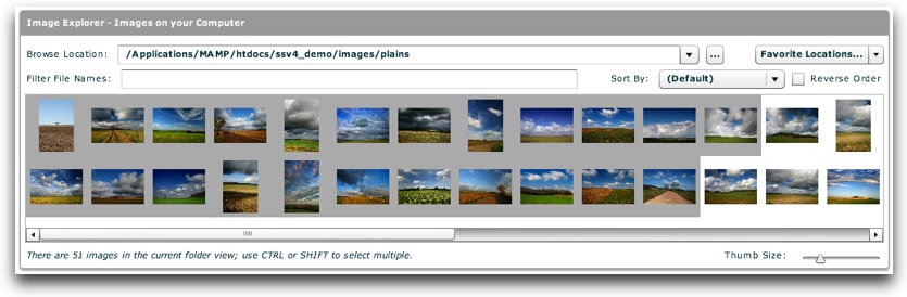 Important note about images [ONLY APPLIES TO BUILD <= 210 ... IN LATER BUILDS USE THE BUILT-IN OPTIMIZER/RESIZER]: While you can use images of any size, it is highly recommended that before adding the images to your slideshow you resize them using a graphics program such as Fireworks or Photoshop to be close to the size at which you plan for them to be displayed. If you don't do this, the images will (unnecessarily) take longer to load, reducing slideshow performance and the quality of user experience.