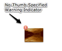 When an image is added and no thumbnail has yet been created for it, a warning indicator will be displayed on the image: