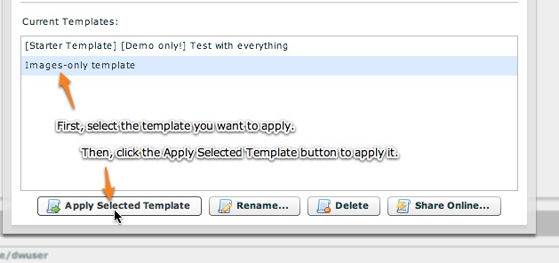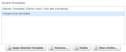 Once you select a template, there are several management buttons which become active: