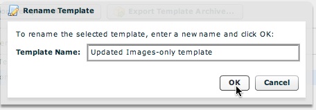 Rename - This button allows you to rename the template. You will receive a prompt which allows you to enter a new name and save the changes: